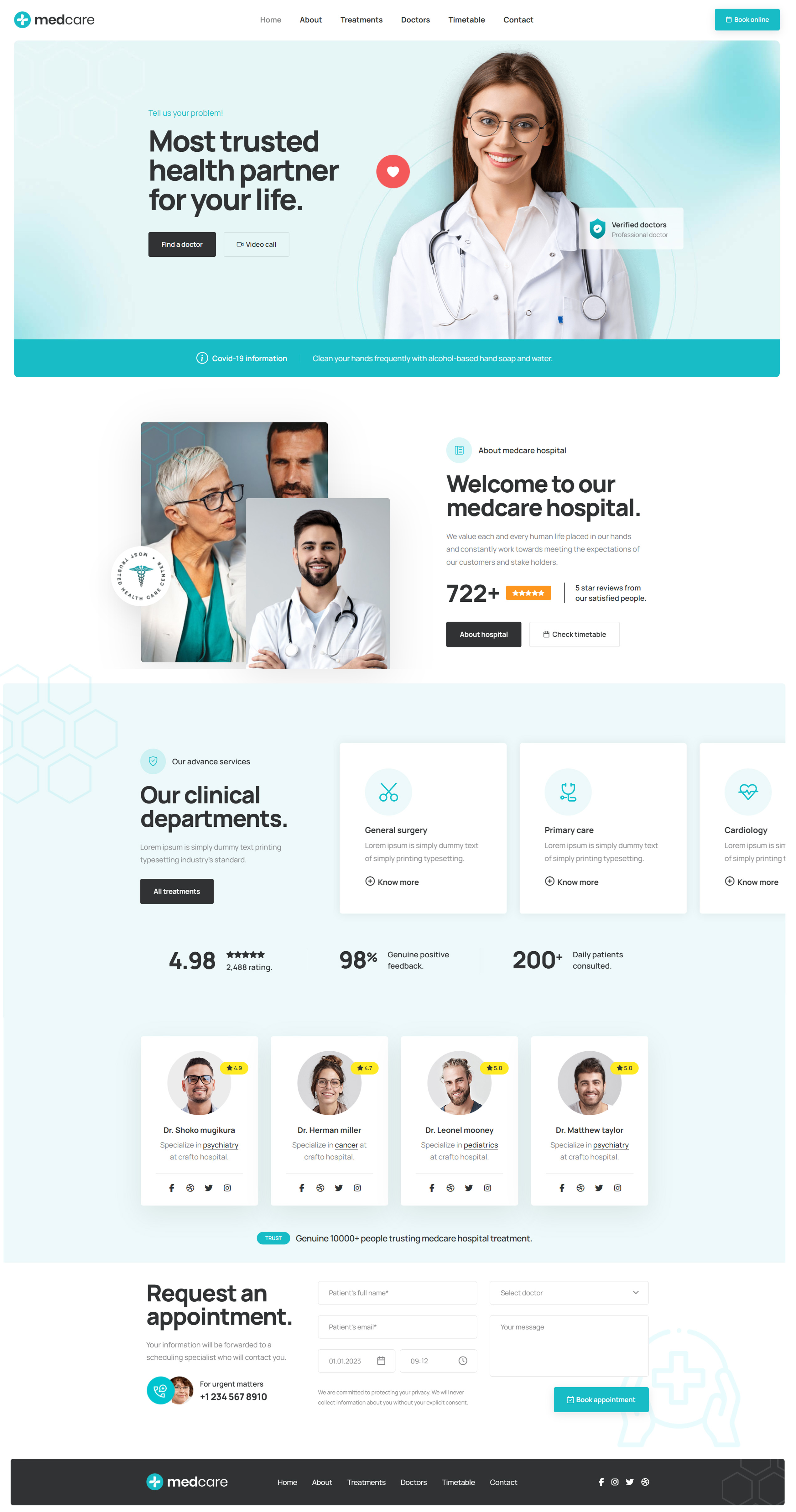 The platform allows patients to easily schedule appointments, learn about services, and get in touch with doctors — providing a reliable and user-friendly digital experience.